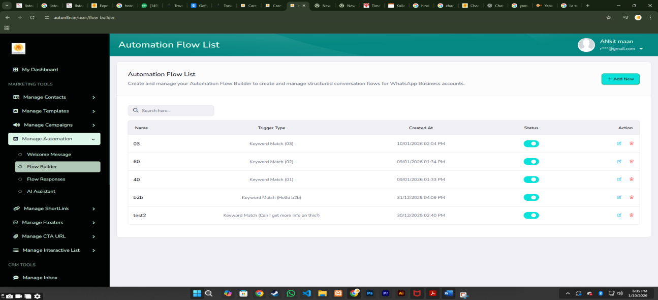 Automate conversations with intelligent chatbot flows. Provide instant replies, collect leads, and support customers 24/7. No coding required.